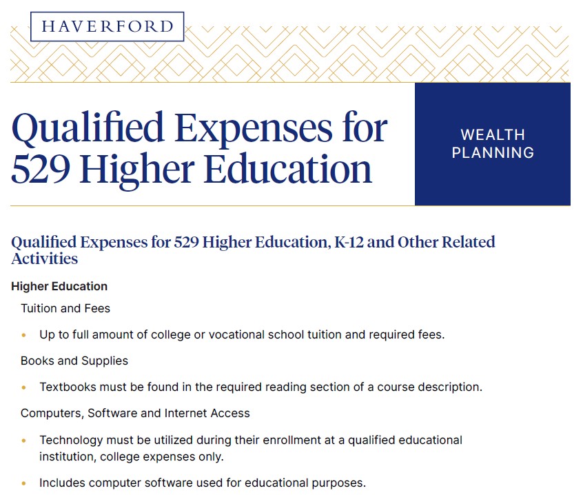 Click the image below for a List of Qualified Expenses for 529 Higher Education