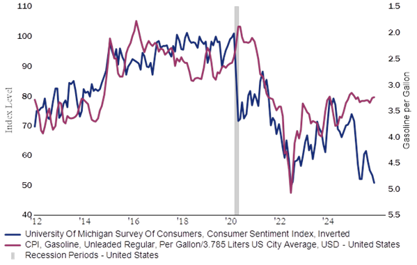 12/29/2025 - The relationship between gasoline prices (inverted) and consumer sentiment has broken down in recent years.